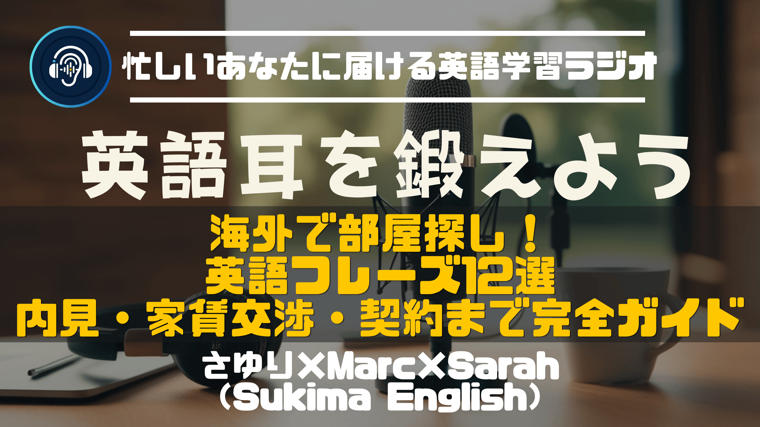 さゆり: 今日のテーマは「不動産・部屋探し」です。 海外で部屋を探すときって、英語の壁がとっても高く感じますよね。 家賃の交渉、初期費用の内訳、光熱費が含まれるかどうか……聞きたいことは山ほどあるのに、なかなか言葉が出てこない。 今日は「物件問い合わせ・内見・家賃と初期費用・契約前の最終確認」の4つの場面で、不動産特有のフレーズを一気にマスターしましょう!
